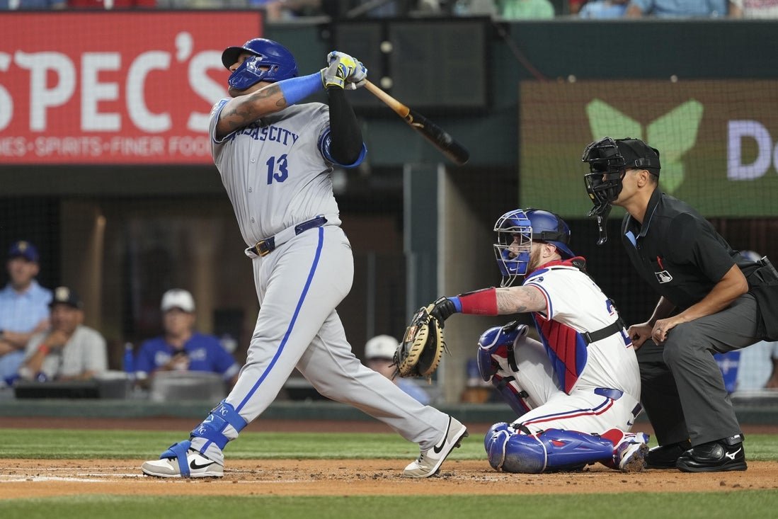 17 ، 2025 ؛ أرلينغتون ، تكساس ، الولايات المتحدة الأمريكية ؛ يعارض صياغة Kansas City Royals Salvador (13) تكلفة شوطهما ضد تكساس رينجرز ضد تكساس رينجرز ضد تكساس رينجرز. الائتمان الإلزامي: صور عكس الصالة الرياضية أخذ سلفادوروس بيريز إلى منزله مرتين وتضاعف في سباق آخر لأن كنساس سيتي رولز تغلبت على كسل سلسلة اللعب الثلاثة في أرلينغتون ، تكساس.