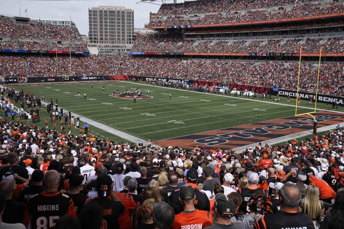 17 سبتمبر 2023 ؛ Sincinati ، أوهايو ، الولايات المتحدة الأمريكية ؛ الربع الأول من وجهة نظر مشتركة في شكل وجهة نظر نموذجية في شكل وجهة نظر عامة في شكل وجهة نظر عامة في شكل منظر عام لبنغال وبالتيمور رافينز وملعب مينكور في منتصف بنجالز وملعب مينكور في وسط البنغال. الائتمان الإلزامي: صور كارا مدين وافقت Cincinnauti Bengal و Hamilton County على الشروط المتعلقة بعقد الإيجار الجديد يوم الخميس ، الذي يضم فريق اتحاد كرة القدم الأميركي في استاد يونيو 2036.