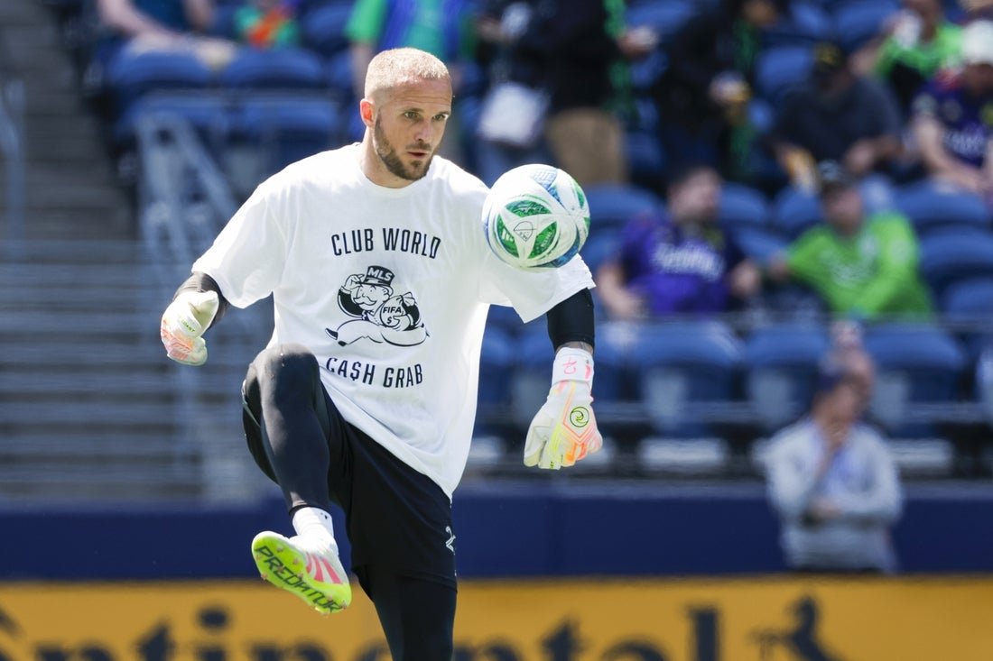 1 يونيو 2025 ؛ سياتل ، واشنطن ، الولايات المتحدة الأمريكية ؛ أثناء المشاركة في حارس مرمى Seattle Soundz FC Stevenfon Free (24) في الوقت الحالي في Shoppel ضد مينيسوتا ، يعد قميصًا قبل الحمل. الائتمان الإلزامي: صور Joe Nicholason-Export وفقًا لتقارير متعددة يوم الثلاثاء ، تم منح لاعب كرة القدم الرئيسي لاعب كرة القدم FIFA Club Cust تعويضًا إضافيًا لمشاركته.