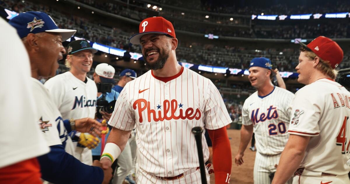 يقوم قراء لوس أنجلوس بعمل لعبة MLB All-Star ، القريبة من Tanner Scott بالقرب من Bronny James و Dodgers.