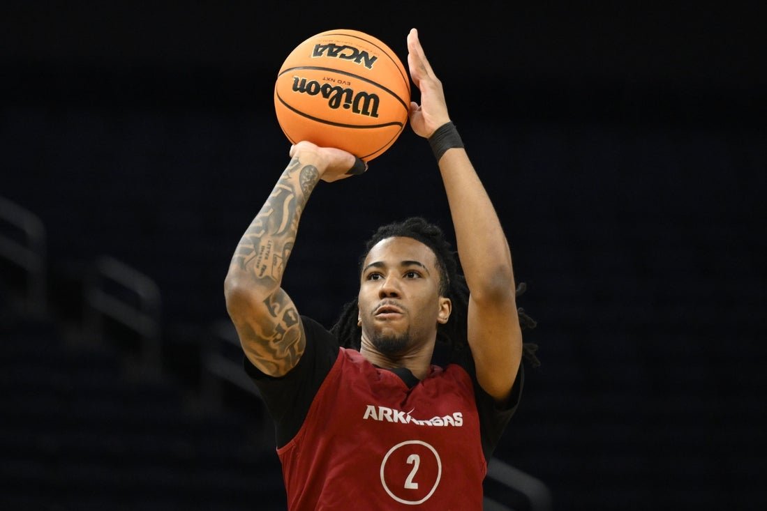 26 مارس 2025 ؛ سان فرانسيسكو ، كاليفورنيا ، الولايات المتحدة ؛ Arkasus Risherback Guard Boogie Friday Shoots خلال NCAA Tournament West Regenent Practice. الائتمان الإلزامي: صور Ekin Howard-Export تعتبر فلوريدا بوينت بعيدة عندما يتعافى آخر إجراءات رياضية من أحدث الإجراءات الرياضية.