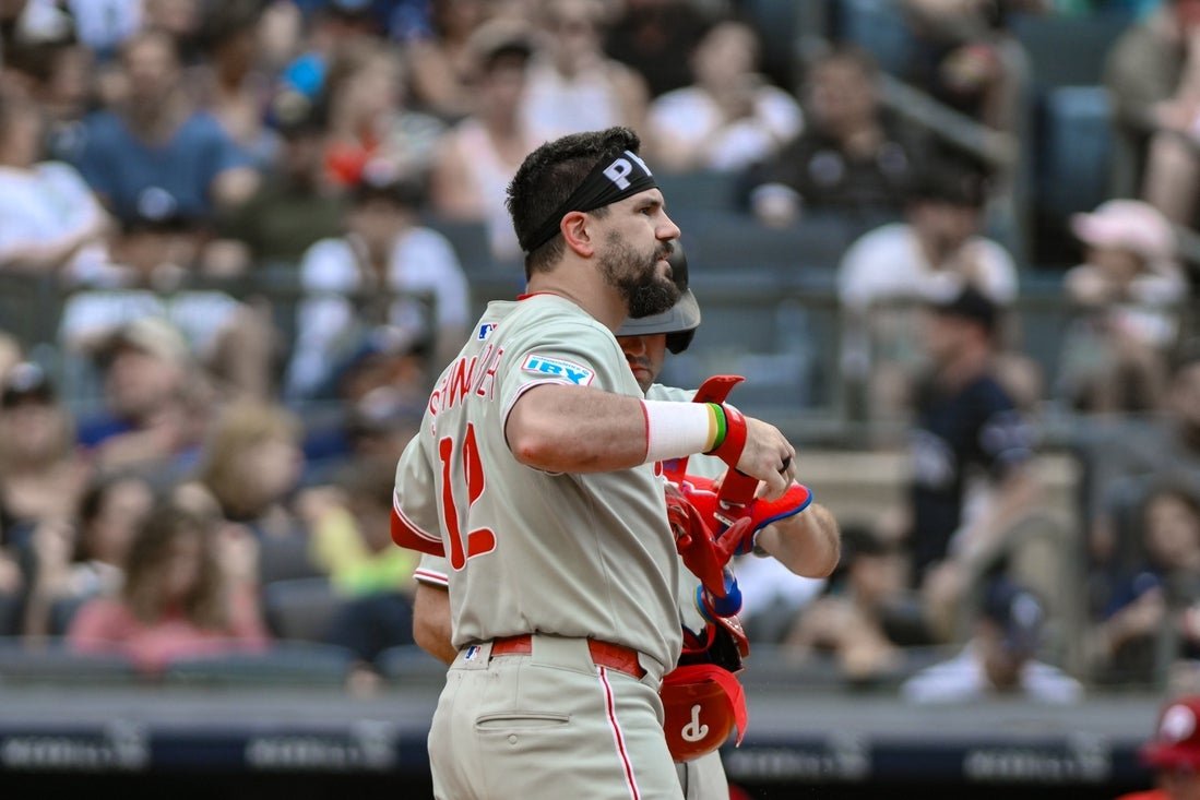 27 يوليو 2025 ؛ نيويورك ، أمريكا ؛ فيلادلفيا تدحض بعد ردود فعل ملعب شوبربر الصالحة في الفم (12) ضد الافتتاح الجديد. الائتمان الإلزامي: صور جون جونز إيجكان يحاول مدير Philadelphia Philis تجربة “وضع الخط إلى الخط إلى الخط.