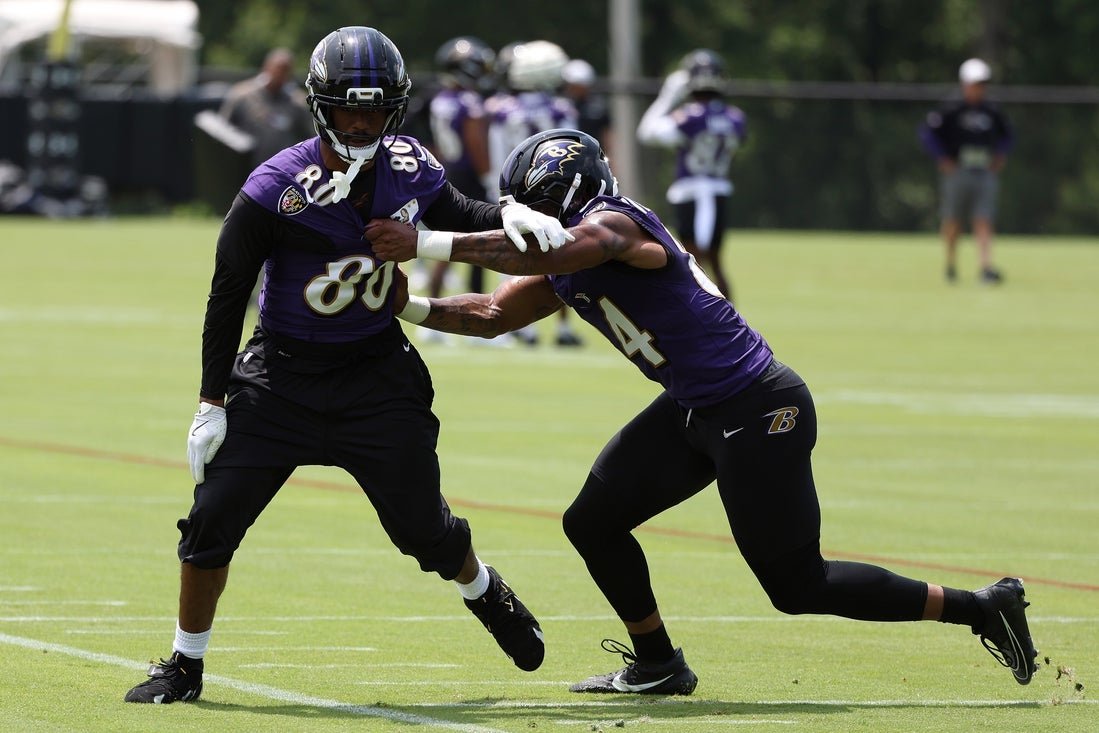 10 يونيو 2025 ؛ بالتيمور ، دكتوراه في الطب ، الولايات المتحدة الأمريكية ؛ خلال اتحاد كرة القدم الأميركي OTA على NFL OTA على NFL OTA في NFL OTA تحت مركز الأداء Branter ، أعطى Isaobor Ravans بالتيمور Ravens إلى Baltimore Ravens إلى الإمكانات (80). الائتمان الإلزامي: دانيال كاكار ج. لقد أصيب بالتيمور بجروح بجروح بجروح قريبة من نهاية ممارسة التدريب يوم الثلاثاء وقال “المدرب جاهوه جون إيرا.