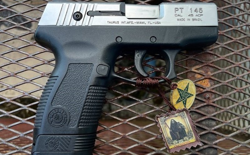 مع استمرار التحقيق ، تمكنت الطائرات بدون طيار من استخدام الأسلحة المشاركة في إطلاق النار. اكتشفت مسدس عيار .45 مع اثنين من المرفقات الصغيرة في منطقة الزناد. يبدو المرء وكأنه رمز وثني ، والآخر هو سانتا مويرت نيجرا ، وهذا يعني الموت المقدس الأسود.