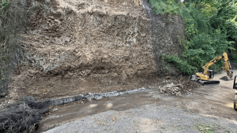 قاد الانهيار الأرضي في 29 مارس مئات الساحات المكعبة من المواد الصخرية وهرب من وجه صخري يبلغ ارتفاعه 100 قدم ، وأشار PBOT إلى أن الأساس قد هبط تقريبًا على مجموعة تخزين الرمال في PBOT. ومع ذلك ، فإن بعض صخور حجم كرة البولينج تتسرب على الطريق ، مما تسبب في الإغلاق.