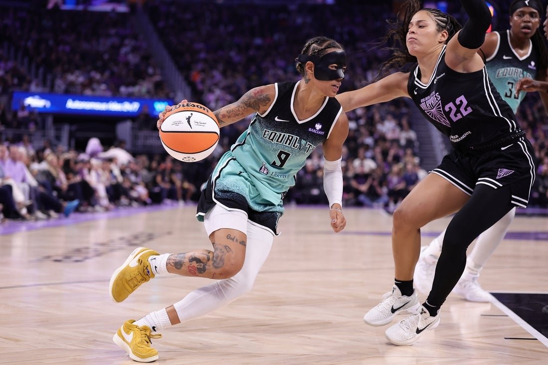 2 سبتمبر 2025 ؛ سان فرانسيسكو ، كاليفورنيا ، حارس الحرية في نيويورك ناتاشا كلاود (9) يقود ضد الحارس الحراسي الحراسي الحراسة الحراسة الحراسة لخابتها في الحراسة (22) في الحارس في المطاردة في المطاردة. الائتمان الإلزامي: صورة COLIEL L COPX-ISMAGE حصلت تضحيات Golden State على ولادة Playf في موسمه الافتتاحي ، مع 66-55 فوزًا في سان فرانسيسكو يوم الثلاثاء.