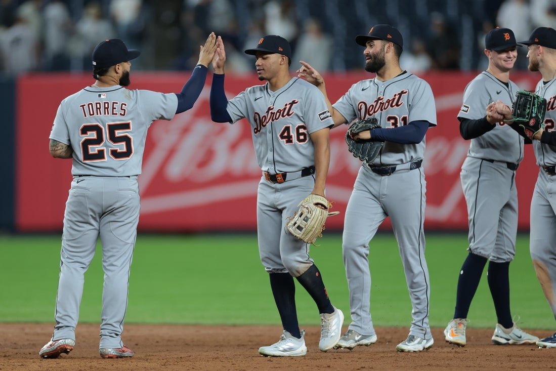 10 سبتمبر 2025 ؛ نيويورك ، أمريكا ؛ يحتفل Deterowite Tigers Other Beasman Glabor Tors (25) بالفرق مع فريق مع فريق بعد هزيمة ملعب نيويورك. الائتمان الإلزامي: صور فنسنت كارشيلت دفعت REA GREEN و CARE PARKHAS خمسة أشواط في يوم الأربعاء ، وسحبت خمسة أشواط خمسة أشواط من خمسة أشواط مع اثنين من أشواط.