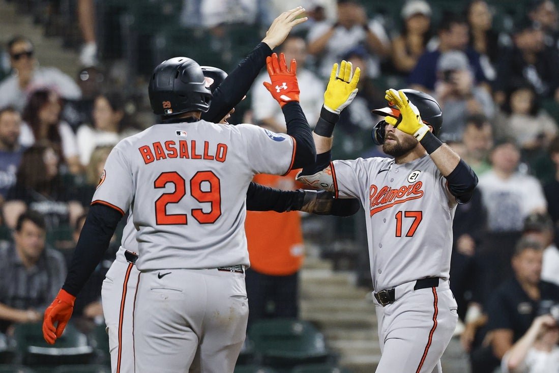 15 سبتمبر 2025 ؛ شيكاغو ، إلينوي ، الولايات المتحدة الأمريكية ؛ احتفل مركز Baltifore Orioles Fitton Kaash (17 عامًا) بأعضاء الفريق خلال السادس في مجال الفريق. الائتمان الإلزامي: صور عكس كومال كرازيش كان كولتون كانير قد دعم ثلاثة أشواط