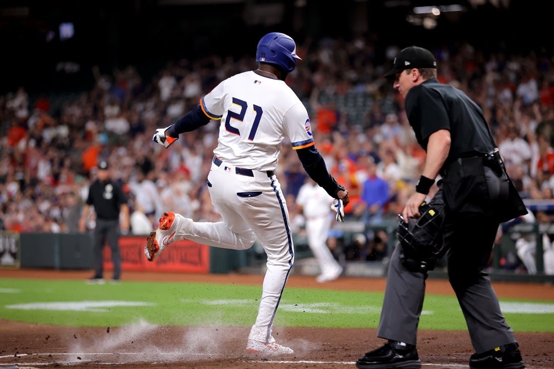 15 سبتمبر 2025 ؛ هيوستن ، تكساس ، الولايات المتحدة ؛ عبرت هيوستن إستروز غلة الحقل (44) اللوحة الرئيسية لتشغيلها ضد تكساس رينجرز خلال الشوط الأول في الشوط الأول. الائتمان الإلزامي: صور إريك ويليامز-إعادة التأثير من المقرر إزالة هيوستن إستروس سالفرون ألغيرز لعبر ساقه اليسرى بعد نسج القدم اليسرى من مباراة الاثنين بعد الأراضي المحلية. أعلن Estroz