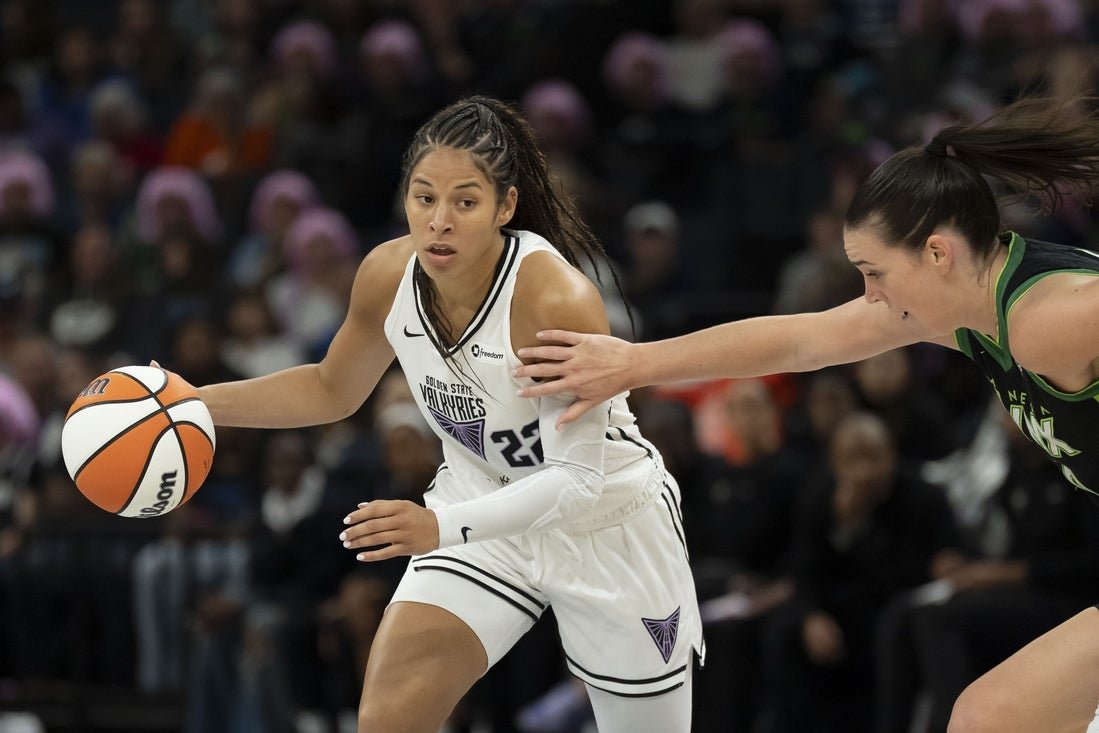 11 سبتمبر 2025 ؛ مينيابوليس ، مينيسوتا ، الولايات المتحدة الأمريكية ؛ Golden State Country Group Vernika Burton (22) Minenesota Links (6) تتعامل مع Minnesota Links Carleton (6) مع Minnesota Links Carleton (6). الائتمان الإلزامي: صورة Jachesy Johnson-Itmph كان اسم جولدن ستيت فالابا هو اللاعب الأكثر تحسناً في WNBA يوم الاثنين.