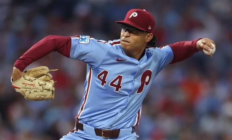 11 سبتمبر 2025 ؛ فيلادلفيا ، فيلادلفيا في الولايات المتحدة ؛ يلقي Phildelphia Philisy Filisy Foundi Ji Hurtdo (44) مواطنًا الملعب يوم الاثنين خلال افتتاح المواطنين. الائتمان الإلزامي: صور بيل سويرنر