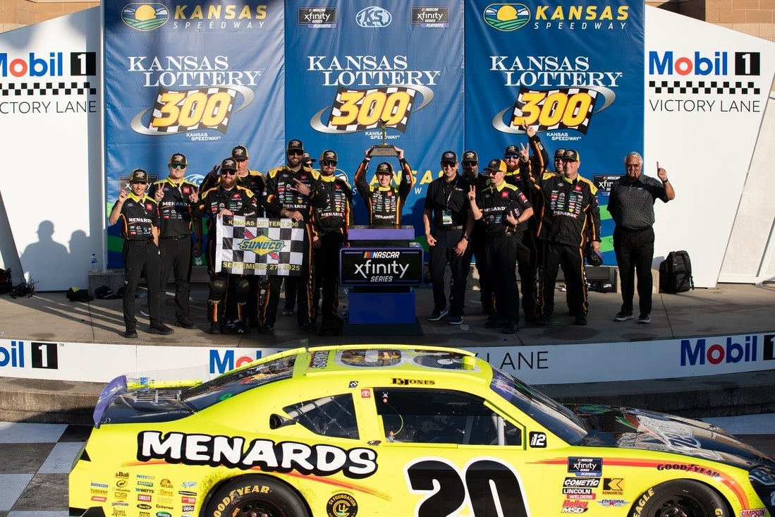 27 سبتمبر 2025 ؛ مدينة وانزاس ، كانساس ، الولايات المتحدة الأمريكية ؛ براندون جونز يحتفل بسباقات التصفيات في سلسلة Naskar Xfinite في Kansas Speedway. الائتمان الإلزامي: كايلي جراهام – تصور – صورة KANSAS CITY ، KAN.