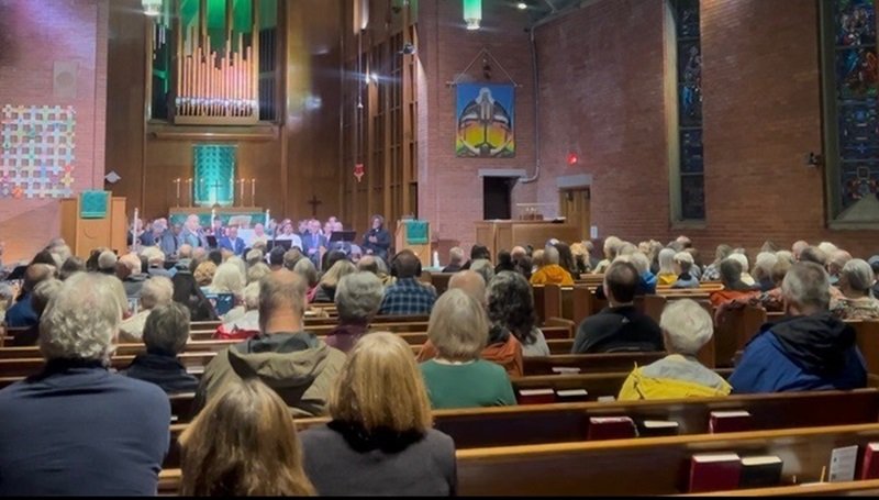 بورتلاند ، أوريغون (كوين) – أقدام داخلية كنيسة أوغستانا اللوثرية في الشمال الشرقي ، كان بورتلاند مليئًا بالأشخاص الذين تجمعوا في خدمة الأديان ، خوفًا من الرغبة في عدم أن تكون وحدها ، مع نشر 200 حارس وطني داخل المدينة هذا الأسبوع.