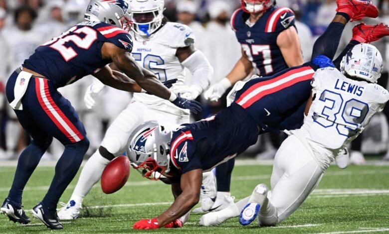 جرح إطلاق النار على الركبة مباشرة قبل تعطل الركبة. استعاد جيبسون الكرة وفريق تافين هندرسون في خط نيو إنجلاند البالغ من العمر 28 عامًا.